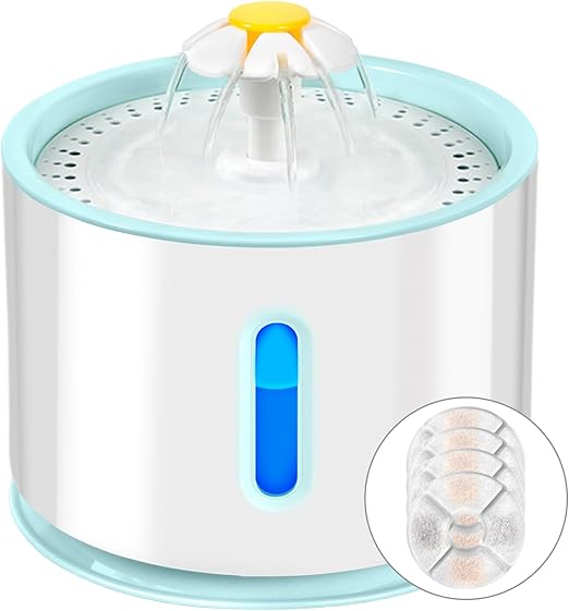 2,4 l dricksfontän, supertyst husdjursfontän med LED-lampor - flera filtrering, 3 vattenflödeslägen, 72 timmars skydd mot vattenbrist